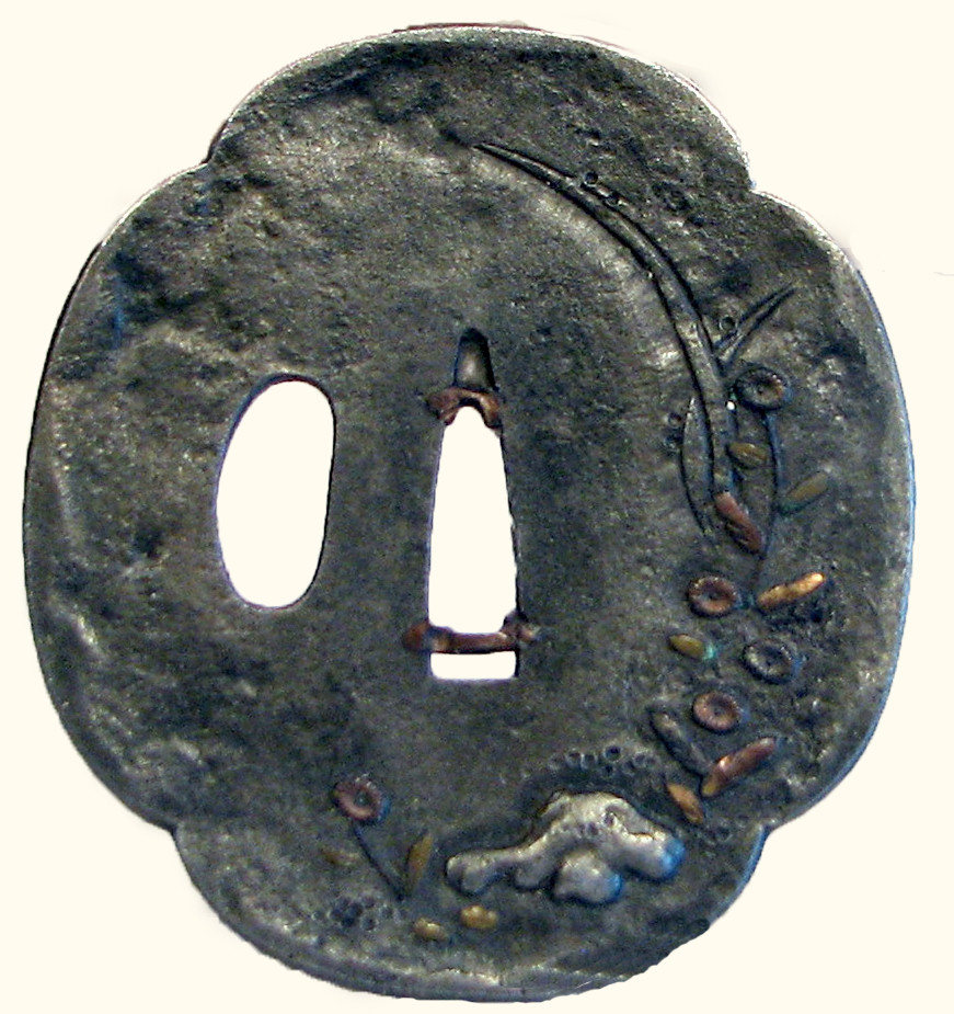 Закладка “Атрибуція” - Наим. предмета, издания: Цуба із зображенням пагонів та квітів/Змiн. розміри: 6,7 х 7,2 х 7,1 см/Змiн. час створення: XVIII-XIX ст.Автор, автор съемки: Невідомий майстерИзм. техника: куванняИзм. техника: гравіруванняИзм. техника: інкрустація