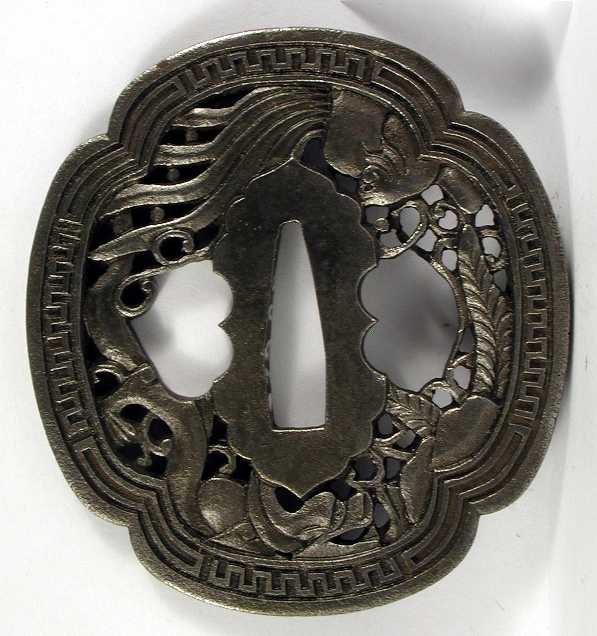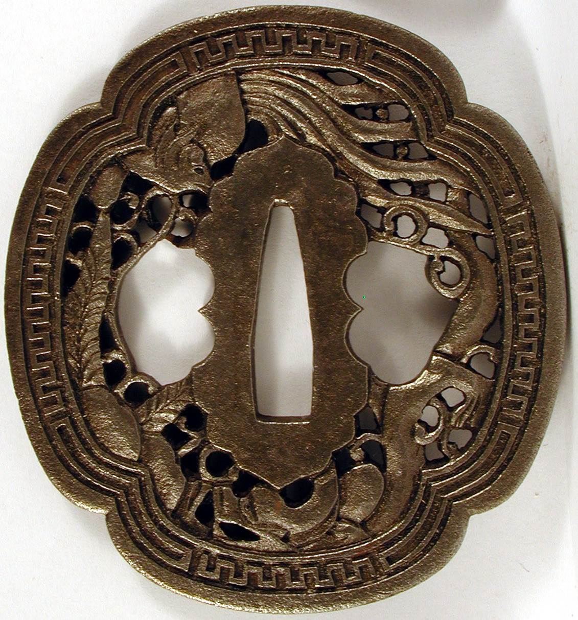 Закладка “Атрибуція” - Наим. предмета, издания: Цуба у стилі „намбан” із зображенням дракона і фенікса/Змiн. розміри: 6,8 х 7,4 х 7,3 см/Змiн. час створення: 17-18 ст.Автор, автор съемки: Невідомий майстерИзм. техника: куванняИзм. техника: різьбленняИзм. техника: гравірування
