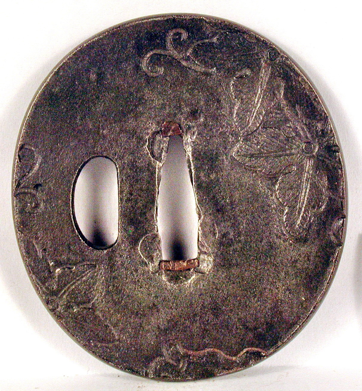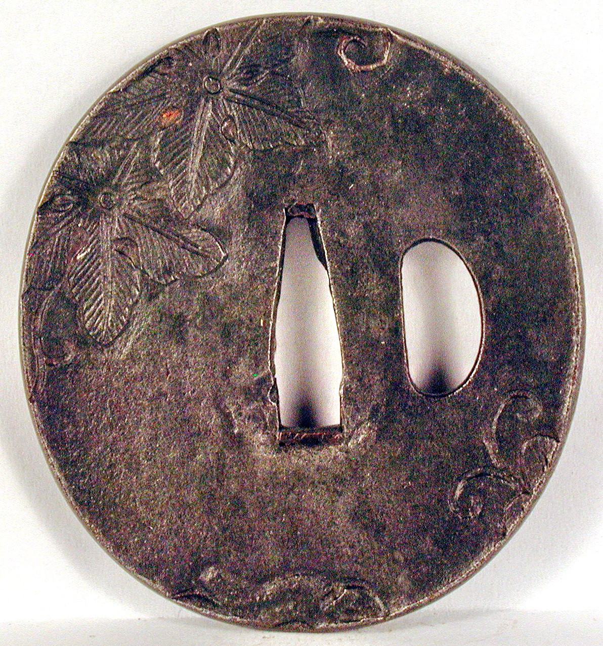 Закладка “Атрибуція” - Наим. предмета, издания: Цуба із зображенням кінугасасо/Змiн. розміри: 6,7 х 7,3 х 7,2 см/Змiн. час створення: XVII-XVIII ст.Автор, автор съемки: Невідомий майстерИзм. техника: куванняИзм. техника: різьбленняИзм. техника: гравірування