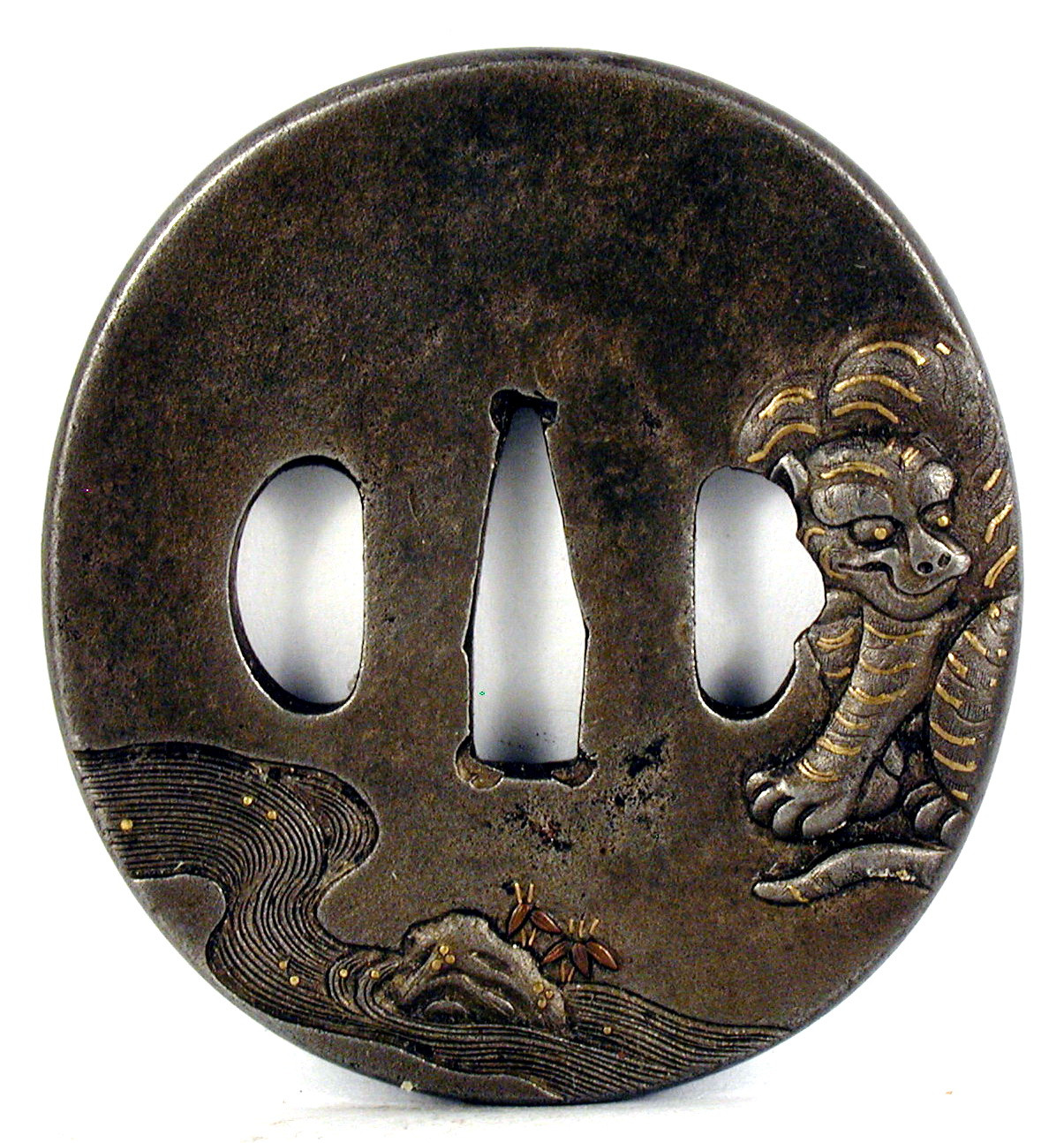 Закладка “Атрибуція” - Наим. предмета, издания: Цуба із зображенням тигра біля потічкуАвтор, автор съемки: Невідомий майстерИзм. техника: куванняИзм. техника: гравіруванняИзм. техника: інкрустація бронзоюмісце створення, школа: м. Сьонаі
