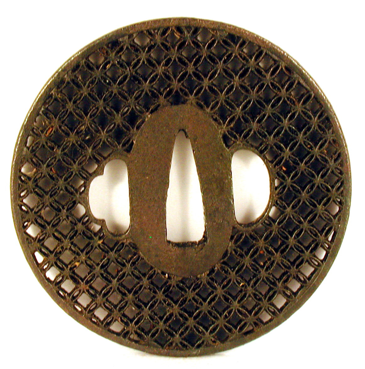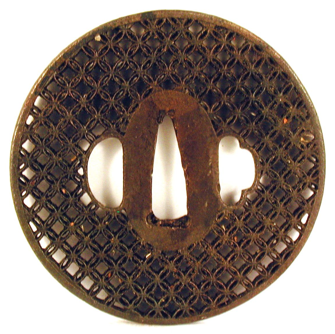Закладка “Атрибуція” - Наим. предмета, издания: Цуба з ажурним визерунком "шиппо"/Змiн. розміри: Д - 8,1 см/Змiн. час створення: 17 ст.Автор, автор съемки: Невідомий майстермісце створення, школа: школа АкасакаИзм. техника: куванняИзм. техника: різьблення