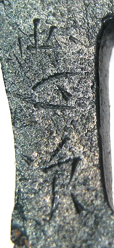 Авторські підписи, клейма: Уздовж центрального отвору гравіровано підпис: Тадацугу. Кьото./Історія Атрибуціi: 1. Консультація 1961 р. наукового співробітника Державного Ермітажу, канд. іст. наук В.Т. Дашкевич: підпис - Тадацугу. Кето. Родина Сьоамі. Остання третина 17 ст./Кількість: 1