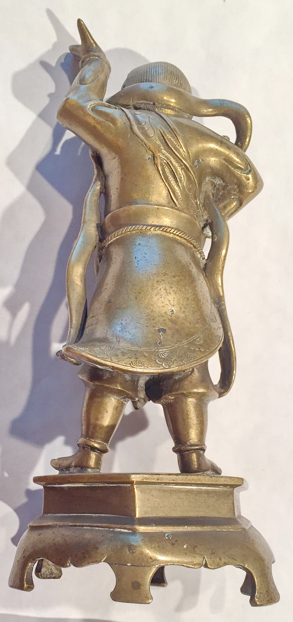на голові отвір у який вставлялася частина статуетки, якої не вистачає.,