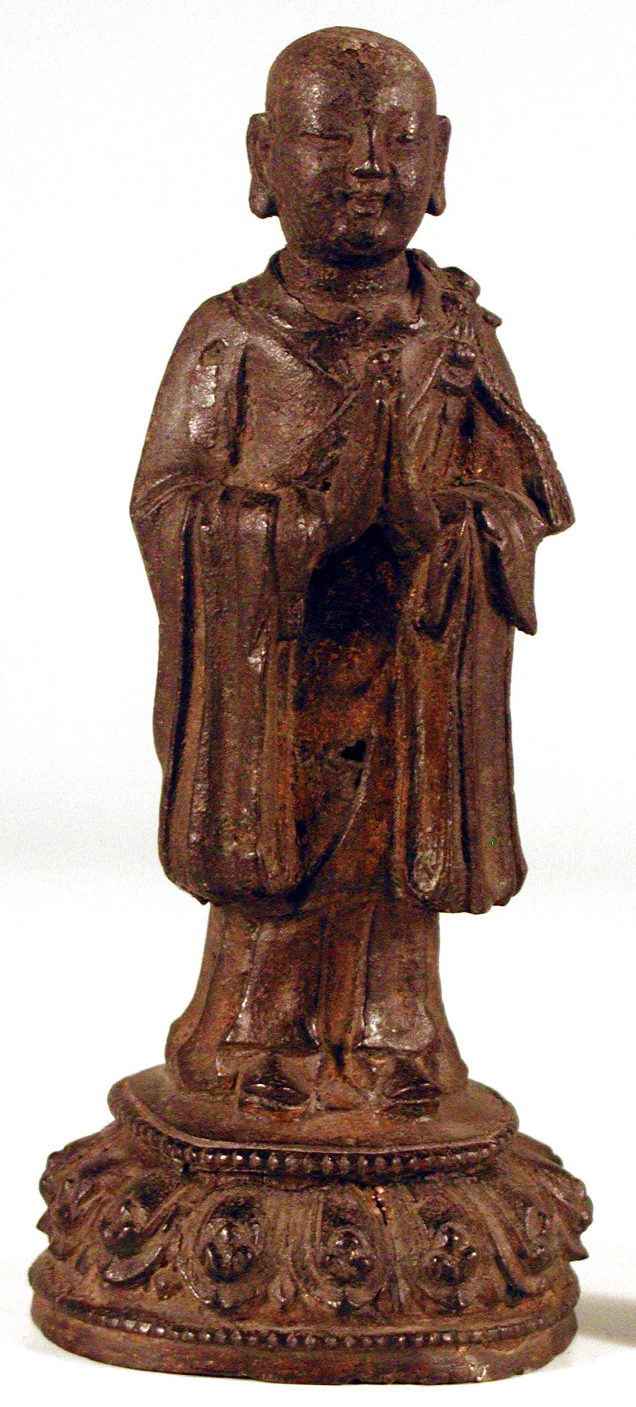 внизу на фігурці святого дірка, внизу лотоса вищерблений прямокутний кусочок,