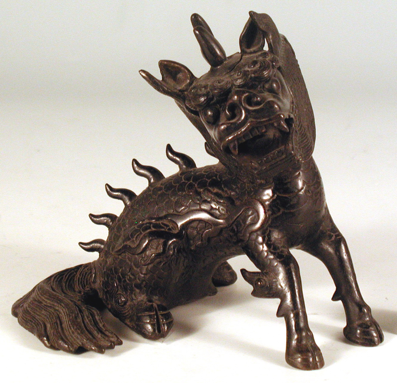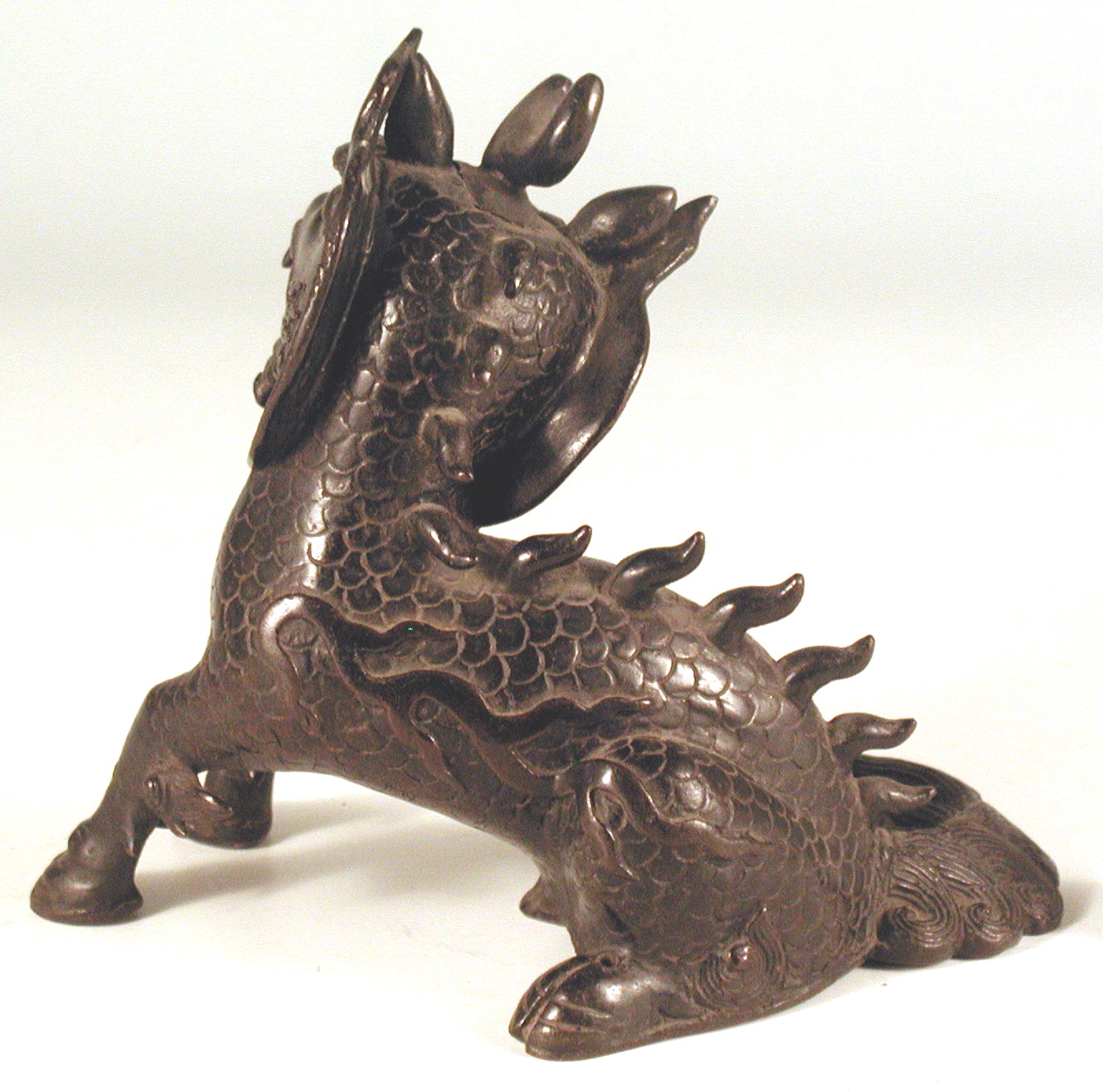 Закладка “Атрибуція” - Наим. предмета, издания: Цилінь - міфічна тварина, яка приносить щастяИзм. техника: литтяИзм. техника: карбуванняИзм. техника: гравіруванняНовый материал: мідний сплав