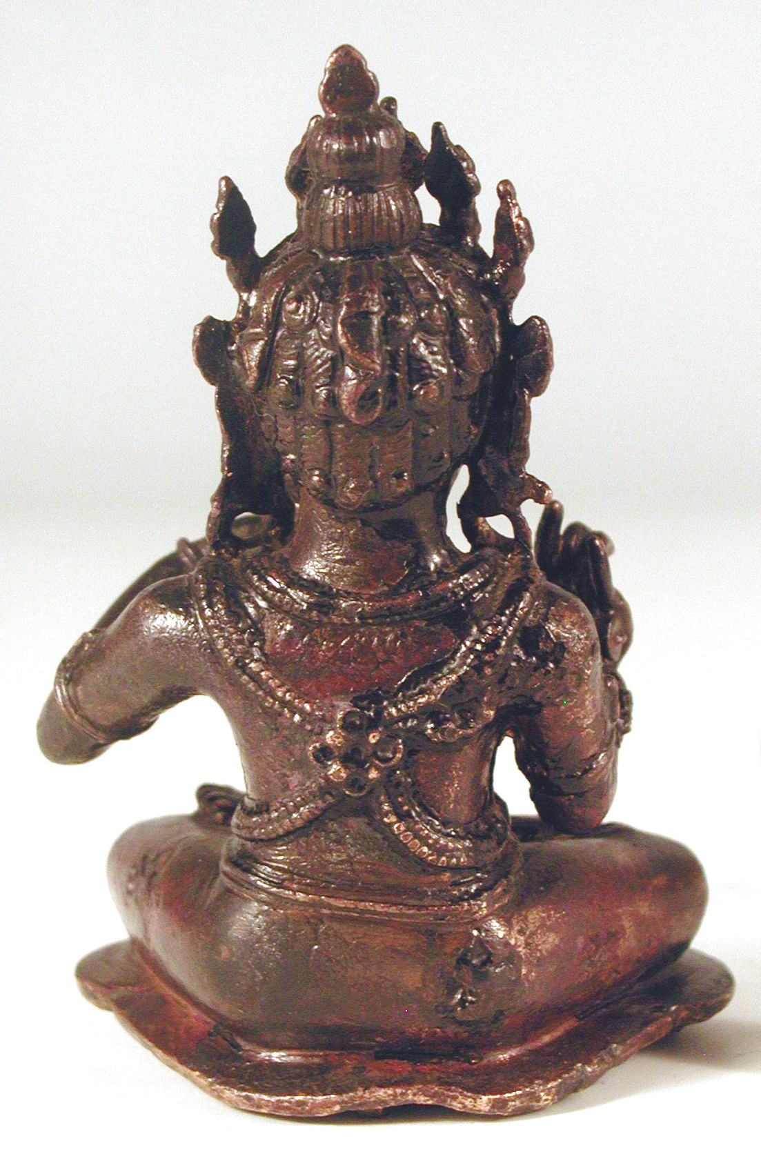 підставка втрачена, чорний лак і позолота майже зовсім стерті, на обличчі подряпини всередині статуетки зелена патина.,