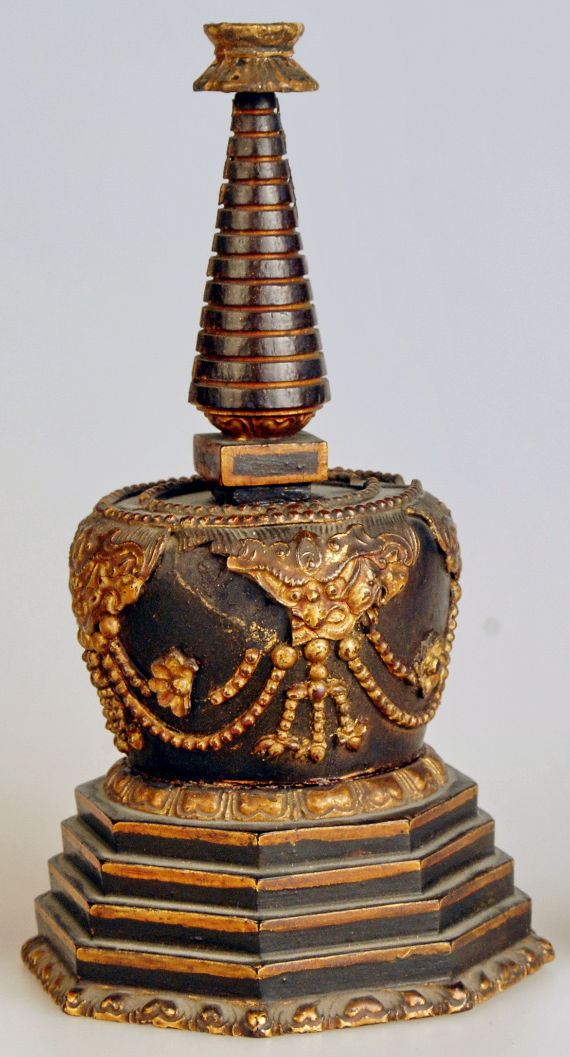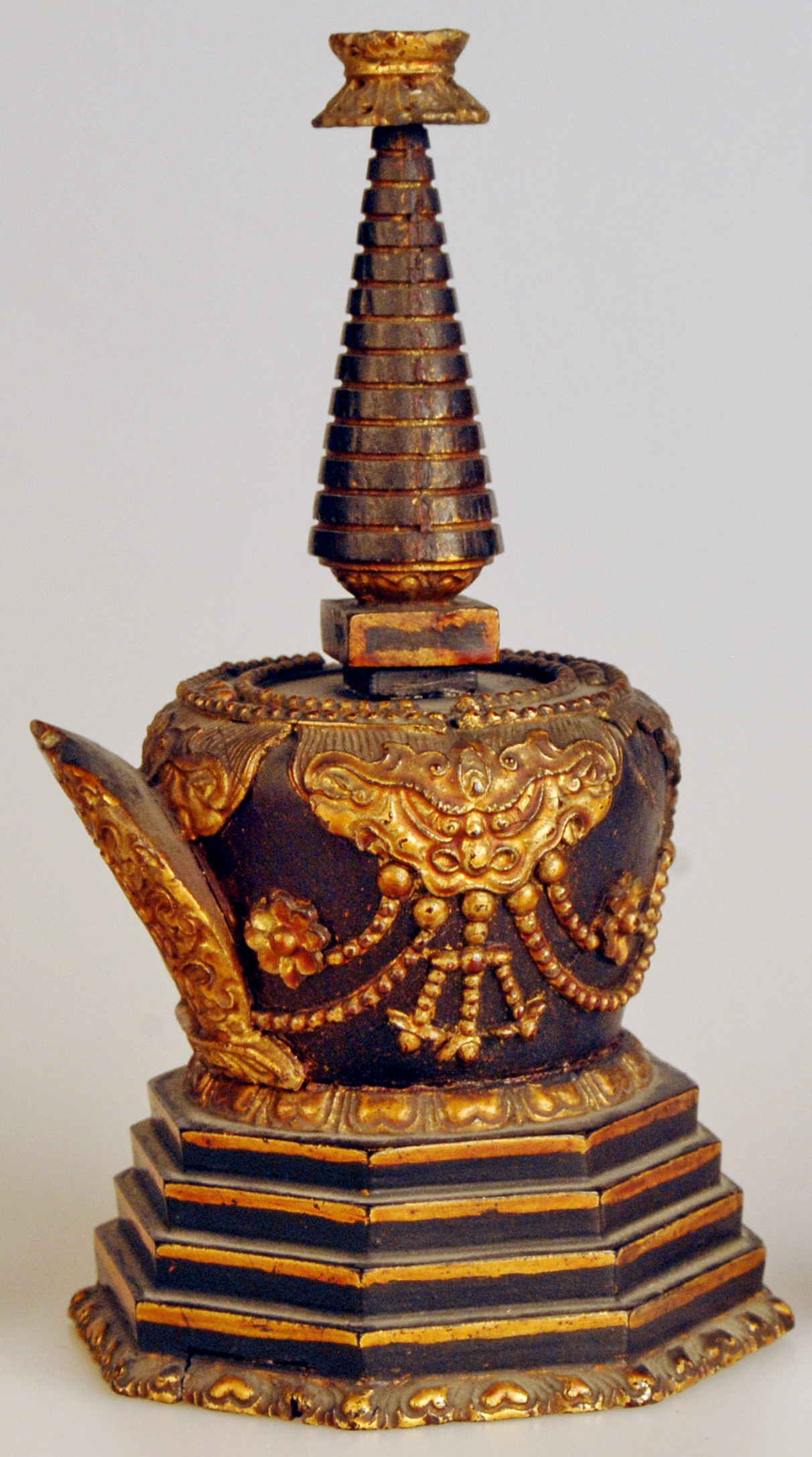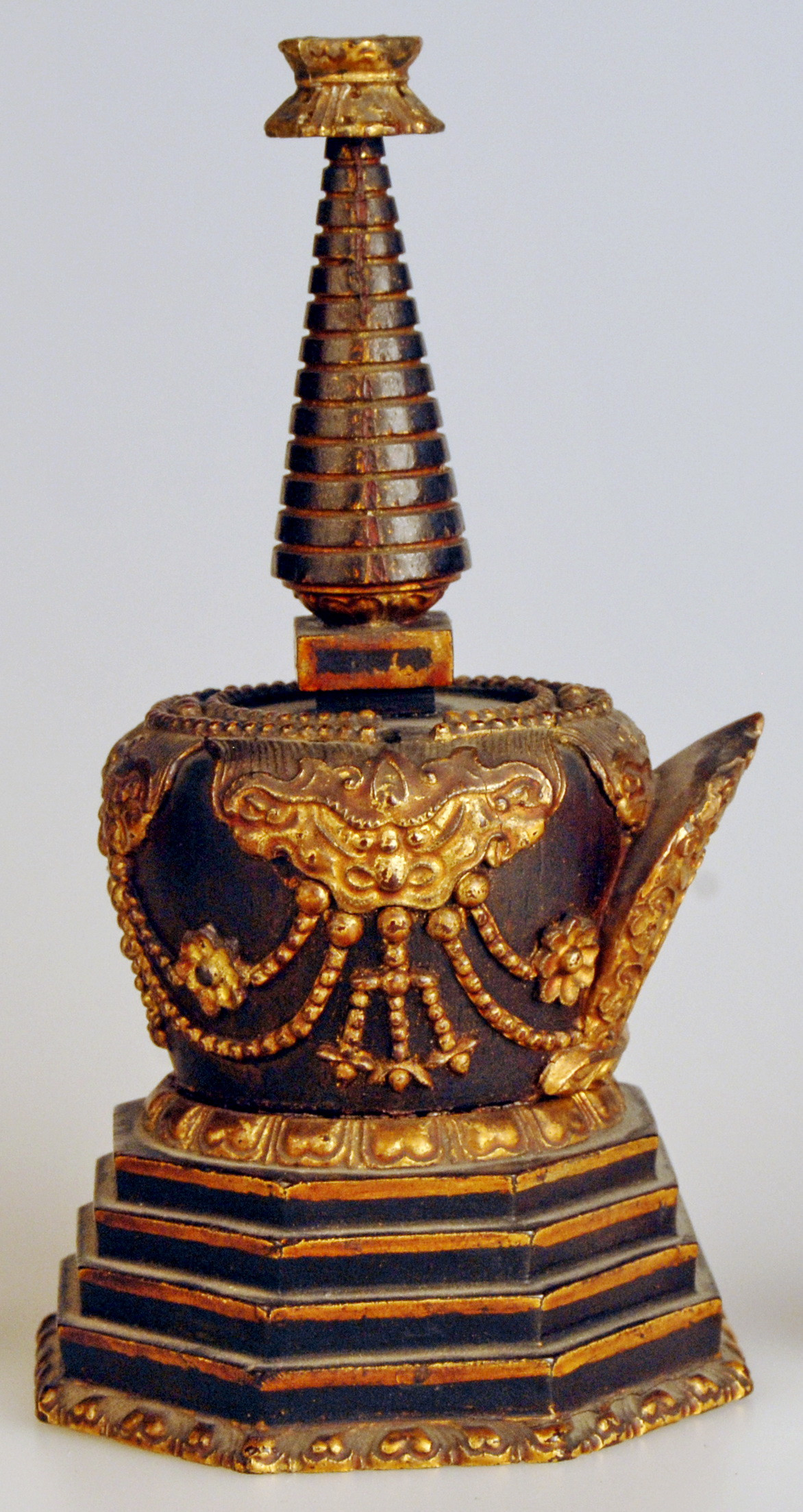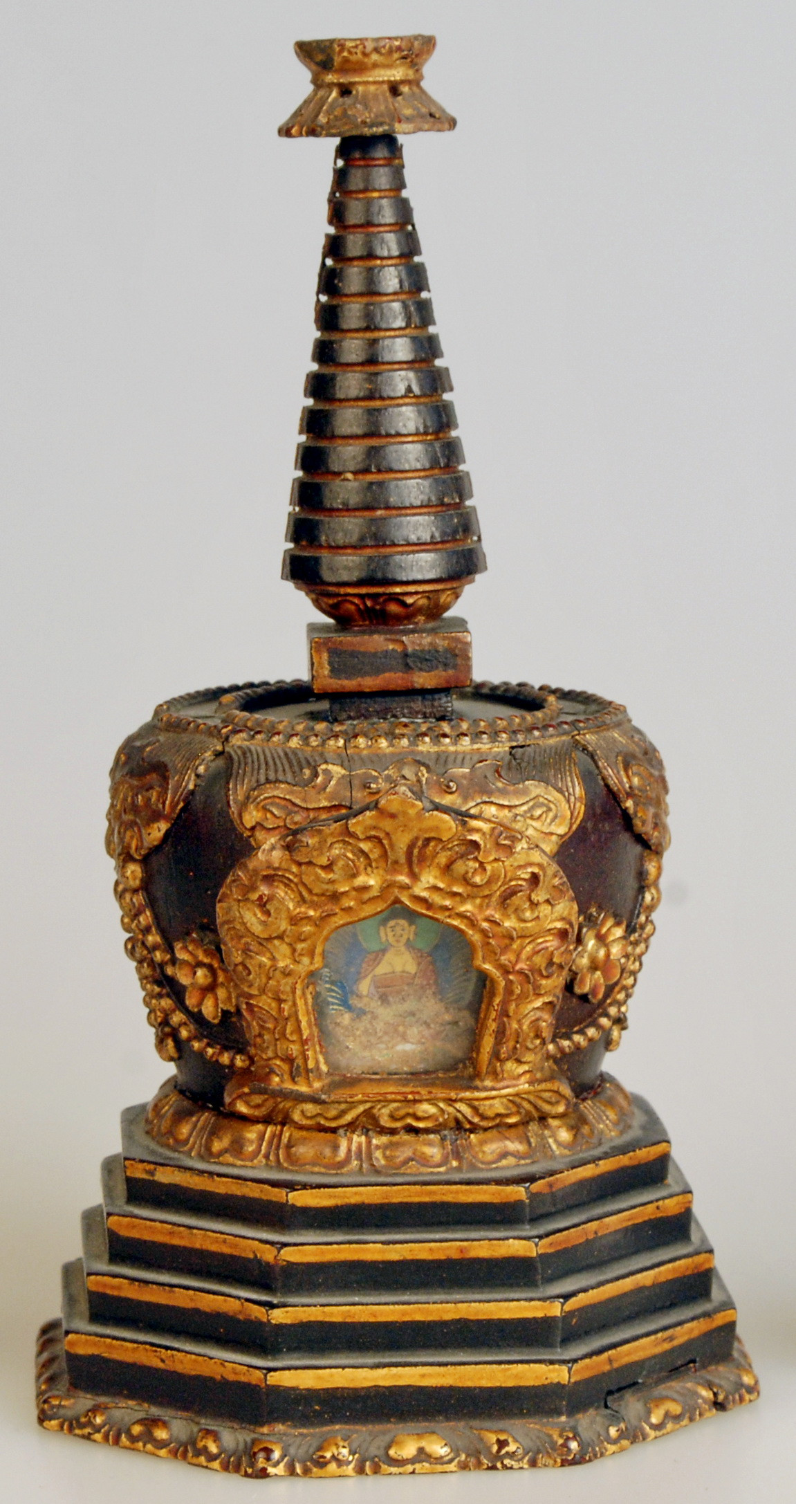 Історія Атрибуціi: 1959 р., Реріх Ю.М., Інститут сходознавства АН СРСР:Тибет, ХІХ ст.; 1976 р., Леонов Г. А., Державний Ермітаж, м. Ленінград (СПб?): Тибет, ХІХ ст./Кількість: 1/Опис: Ступа (скр. stupa, тиб. mchod-rten)
