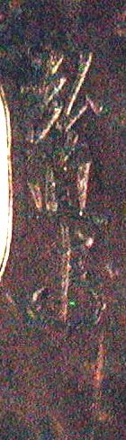 Авторські підписи, клейма: Уздовж центрального отвору гравіровано підпис: Хіронао. Школа Утікосі, м. Едо. Учень Хіронага./Історія Атрибуціi: 1. Консультація 1961 р. наукового співробітника Державного Ермітажу, канд. іст. наук В.Т. Дашкевич: підпис - Хіронао. Школа Утікосі, м. Едо. Учень Хіронага. Перша половина 19 ст./Кількість: 1
