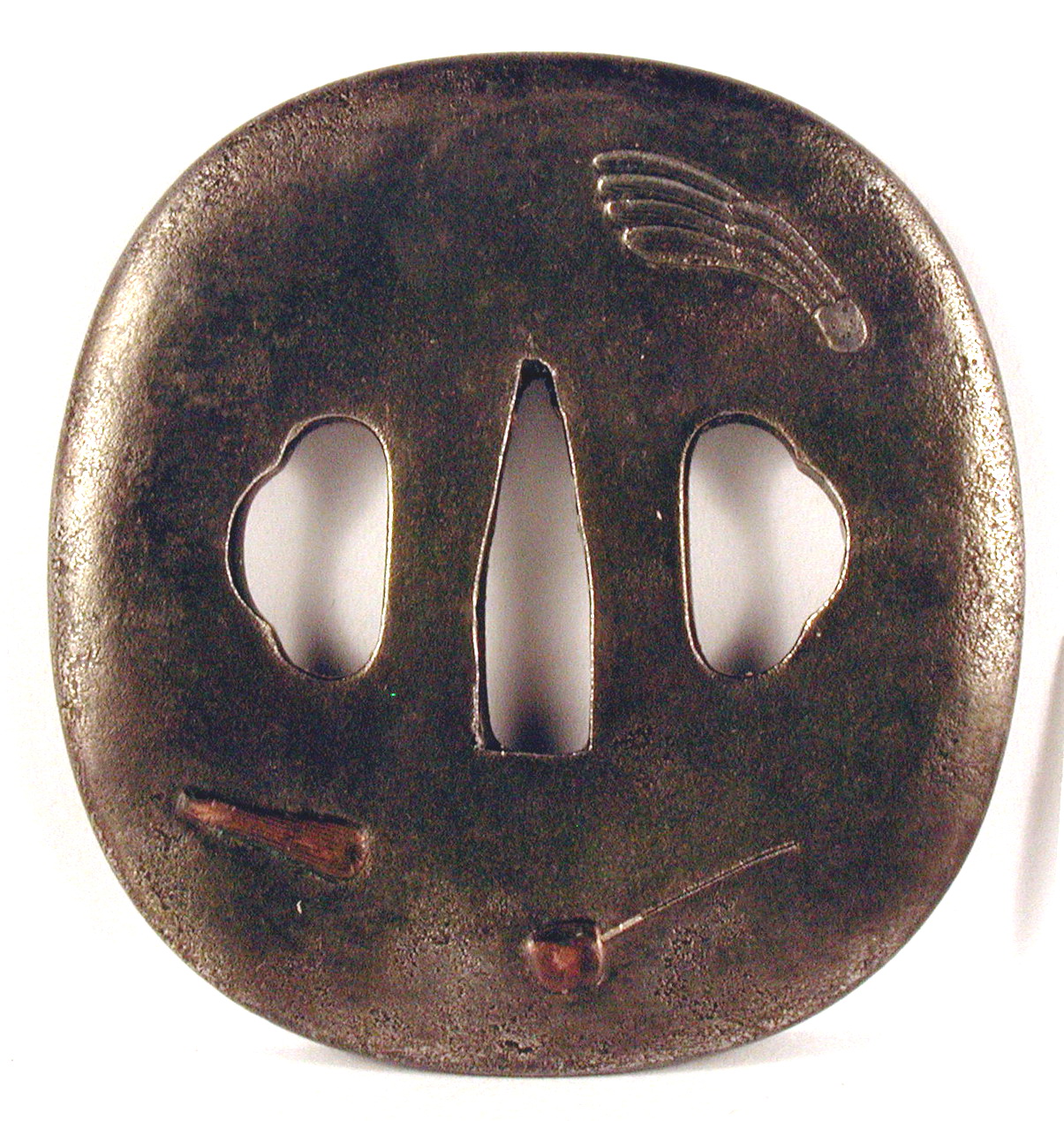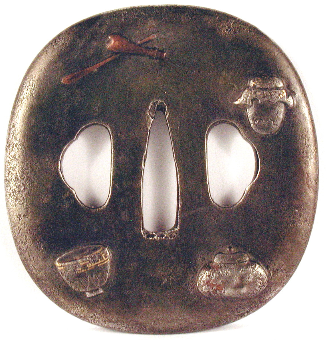 Закладка “Атрибуція” - Змiн. розміри: 7,1 х 7,5, 7,7 см/Змiн. час створення: XVII ст.Автор, автор съемки: Невідомий майстерИзм. техника: куванняИзм. техника: гравіруванняИзм. техника: патинуванняИзм. техника: накладний рельєфИзм. техника: інкрустація золотом