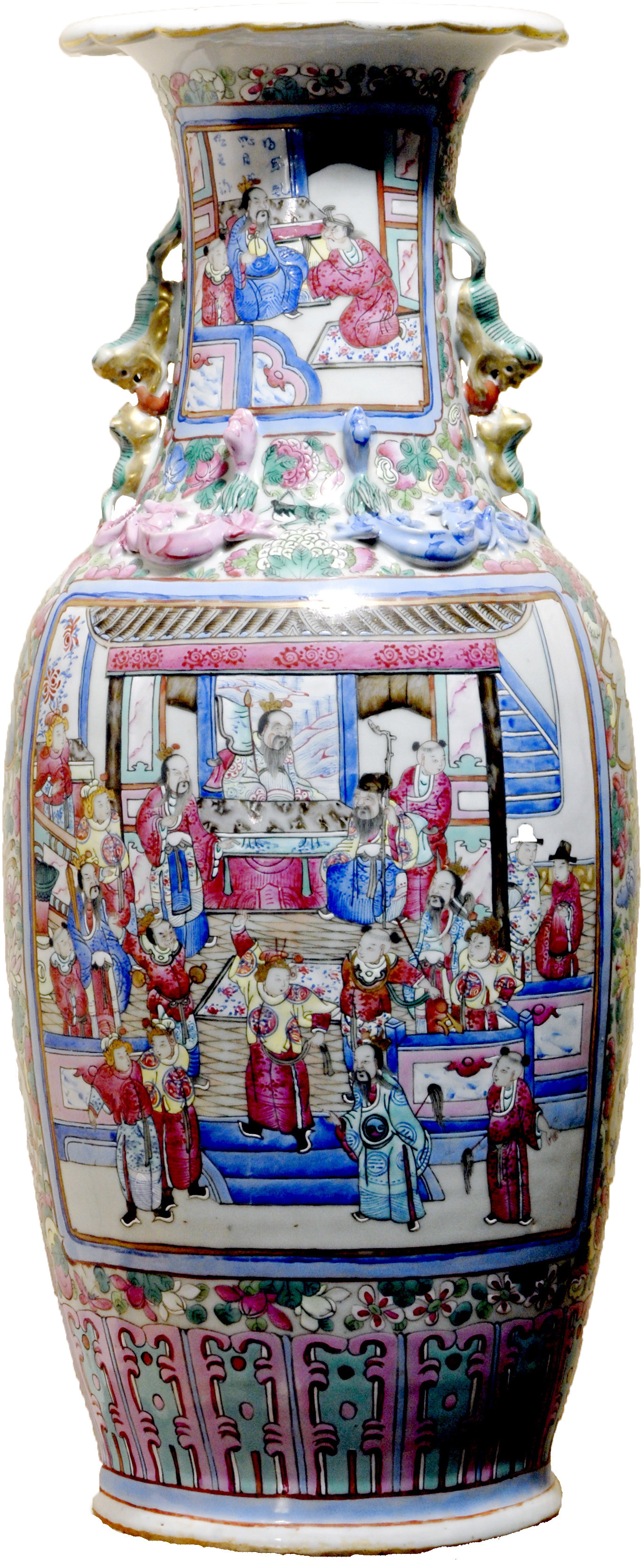 Ваза яйцевидна, подовженої форми, на білому фоні-побутова сцена.