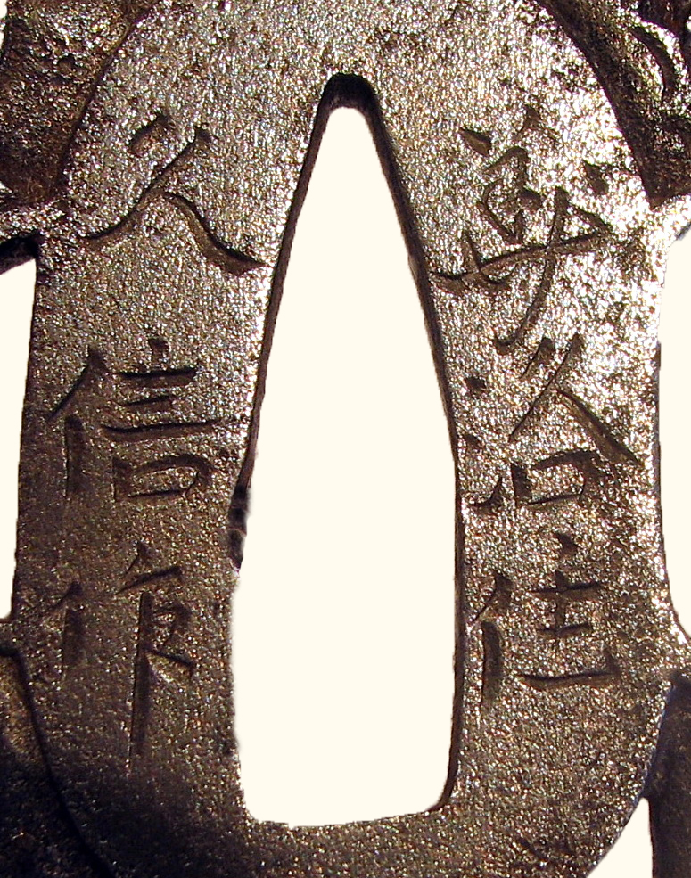 Авторські підписи, клейма: Уздовж центрального отвору гравіровано підпис: "Хісанобу"./Історія Атрибуціi: 1. Консультація 1961 р. наукового співробітника Державного Ермітажу, канд. іст. наук В.Т. Дашкевич: підпис - Хісанобу, 18 ст.? (перевірити)./Кількість: 1
