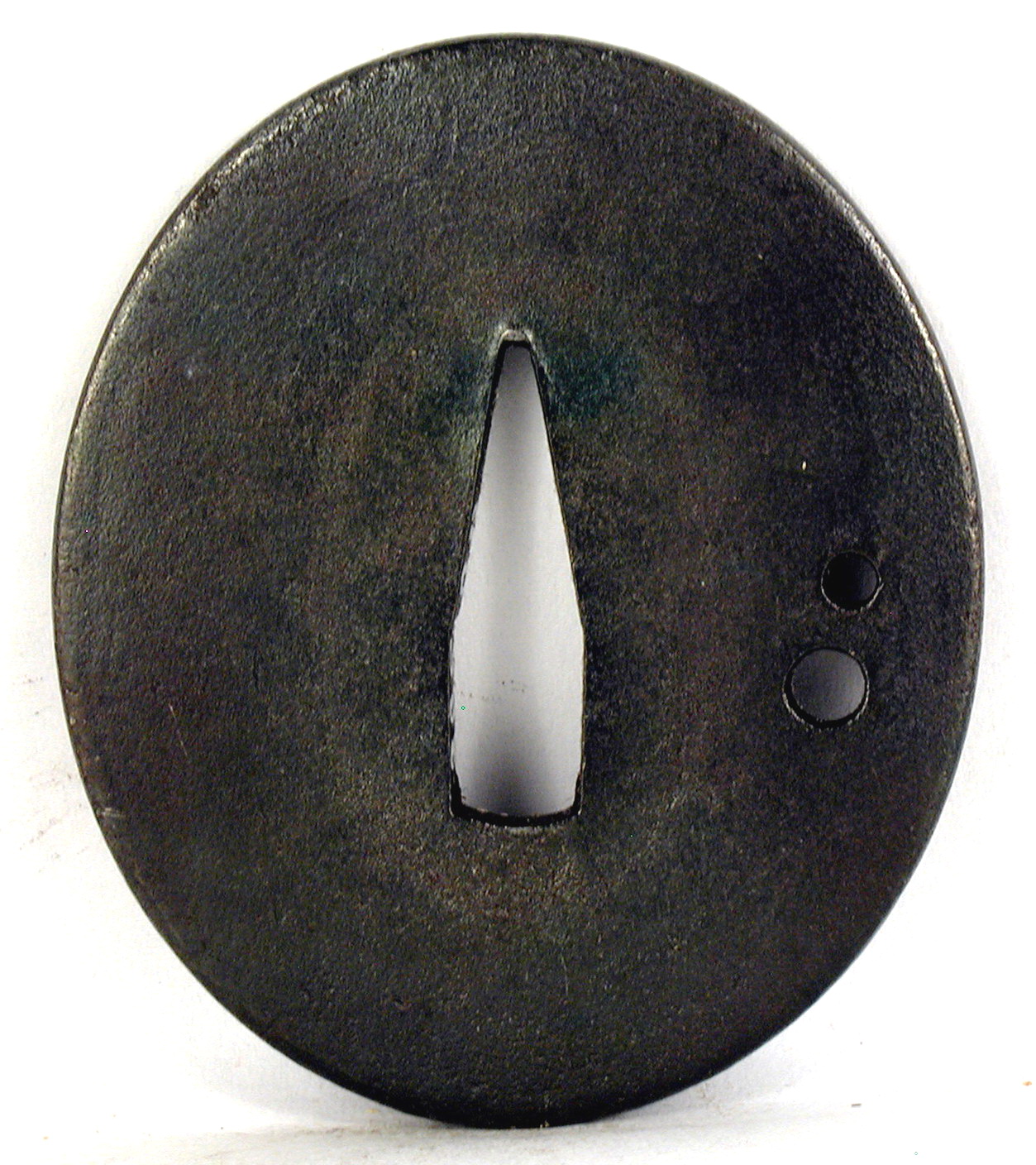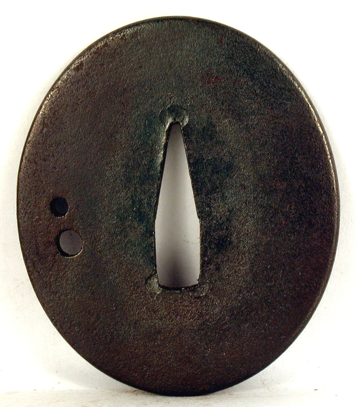 Закладка “Атрибуція” - Наим. предмета, издания: Цуба із двома дрібними круглими отворами/Змiн. розміри: 5,6 х 6,6 см/Змiн. час створення: XVIII ст.Автор, автор съемки: Невідомий майстерНовый материал: залізоИзм. техника: куванняИзм. техника: різьблення