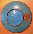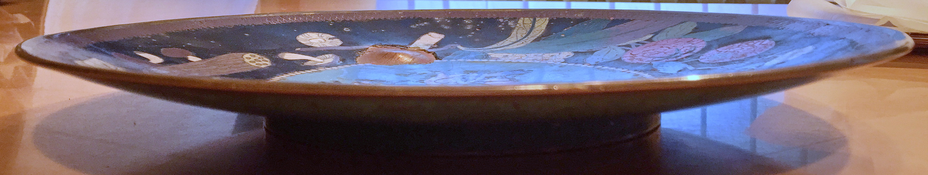 в одному місці блюдо вигнуте з випаданням емалі в лицьовій і на зворотній стороні, численні дрібні випадання емалі, потертості, поверхня забруднена.,