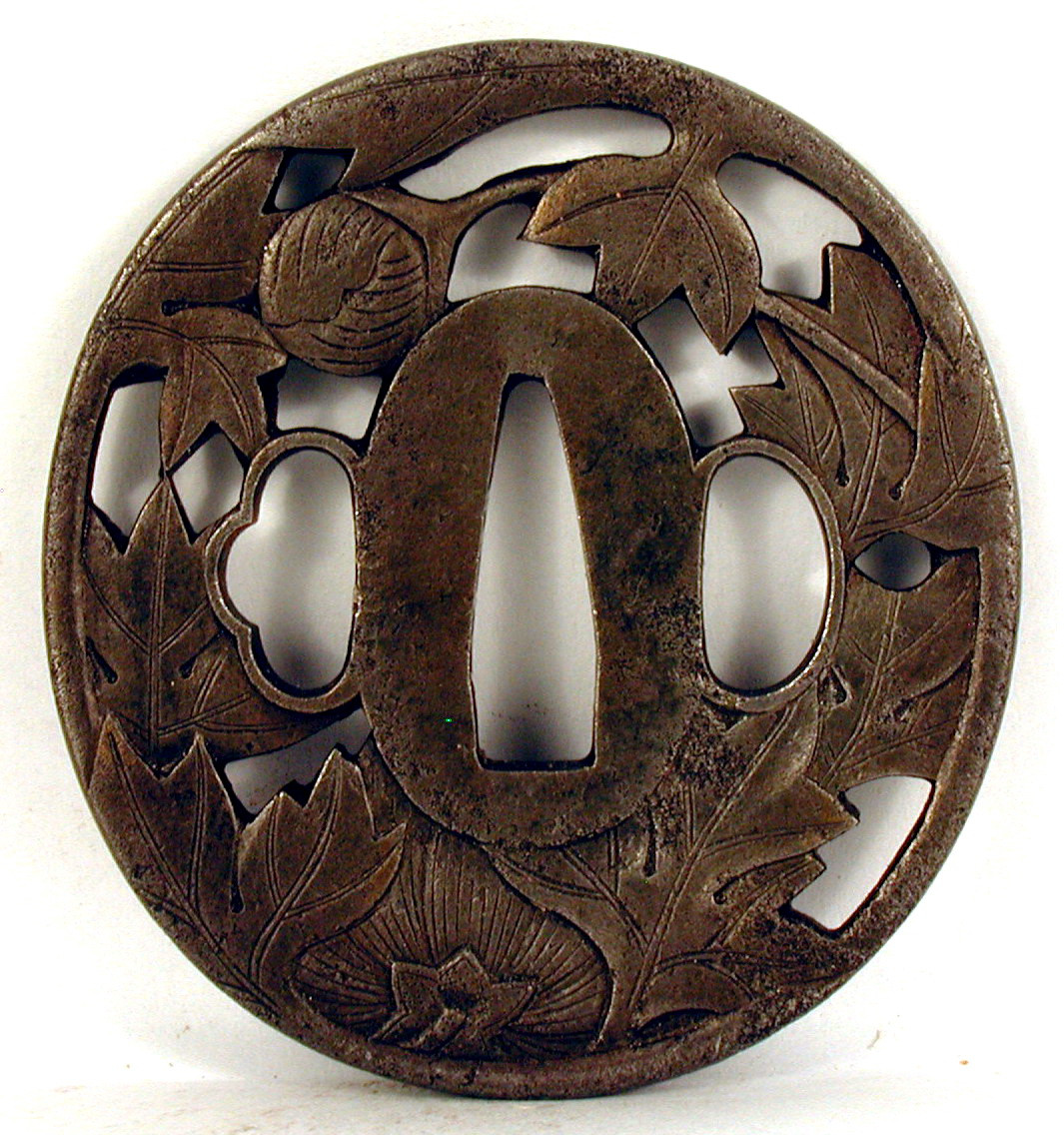 Закладка “Атрибуція” - Наим. предмета, издания: Цуба із зображенням півонії/Змiн. розміри: 6,9 х 7,4 х 7,3 см/Змiн. час створення: друга пол. 18 ст.
