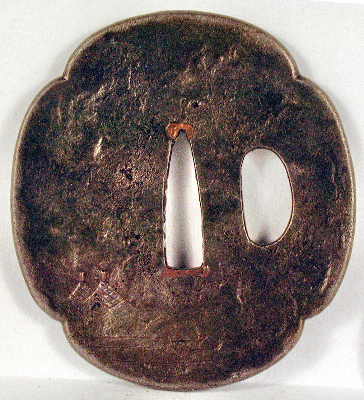 Закладка “Атрибуція” - Наим. предмета, издания: Цуба із зображенням двох ченців у човні/Змiн. розміри: 6,6 х 7,2 см/Змiн. час створення: Кінець XVII-XVIII ст.Автор, автор съемки: Невідомий майстерИзм. техника: куванняИзм. техника: гравіруванняИзм. техника: інкрустаціяИзм. техника: накладний рельєфИзм. техника: сріблення