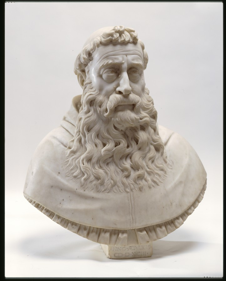 /Опис: Погрудне зображення кардинала з вусами та довгою пишною бородою. У нього повне обличчя з дещо припухлими очима, довгим м'ясистим носом і кудлатими бровами. На носі і біля брів дві бородавки. На голові велика тонзура, оточена обідком густого волосся. Пелерина його кардинальської мантії завершує форму бюста. Зображення підкреслено фронтальне. (Пандан № 25)