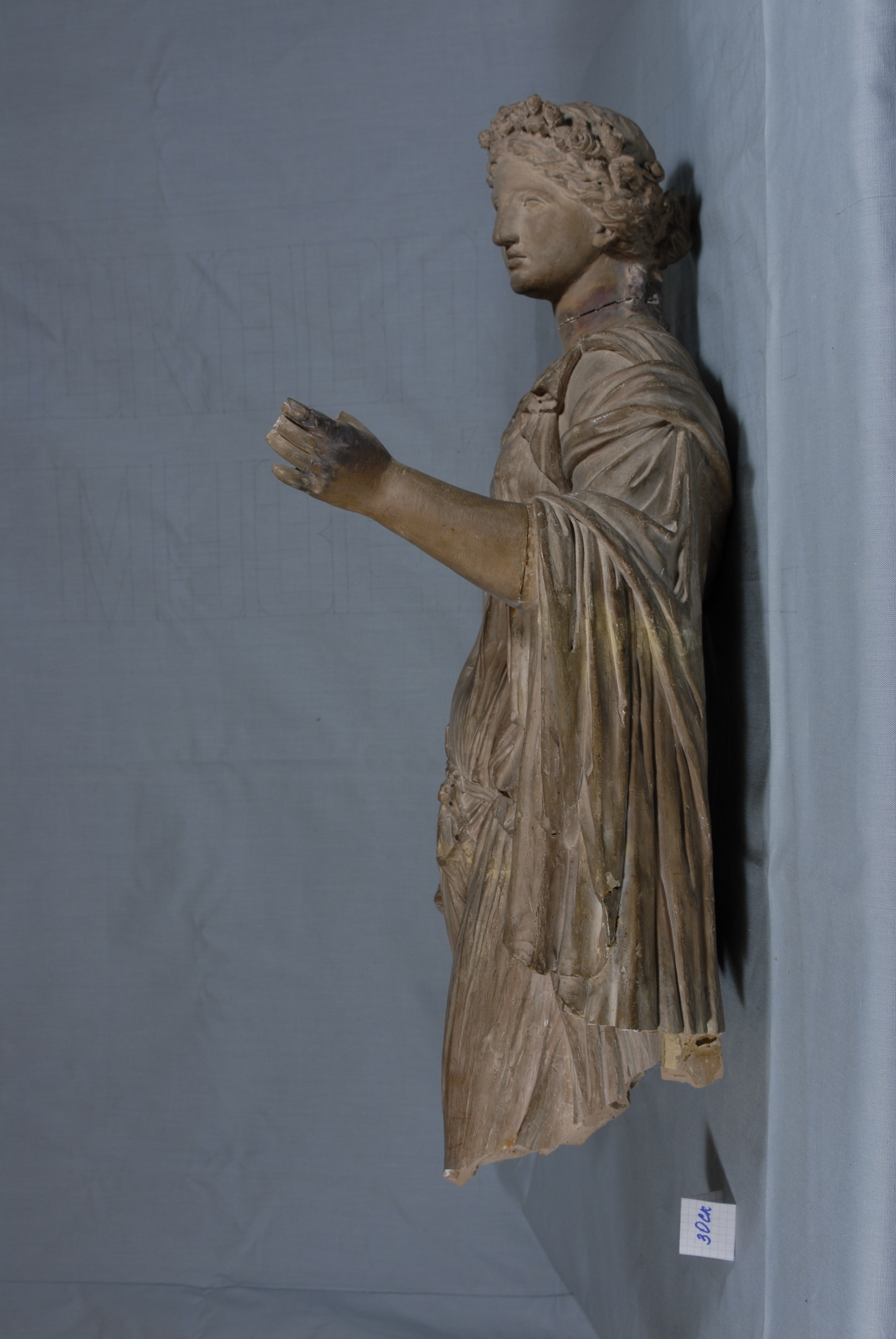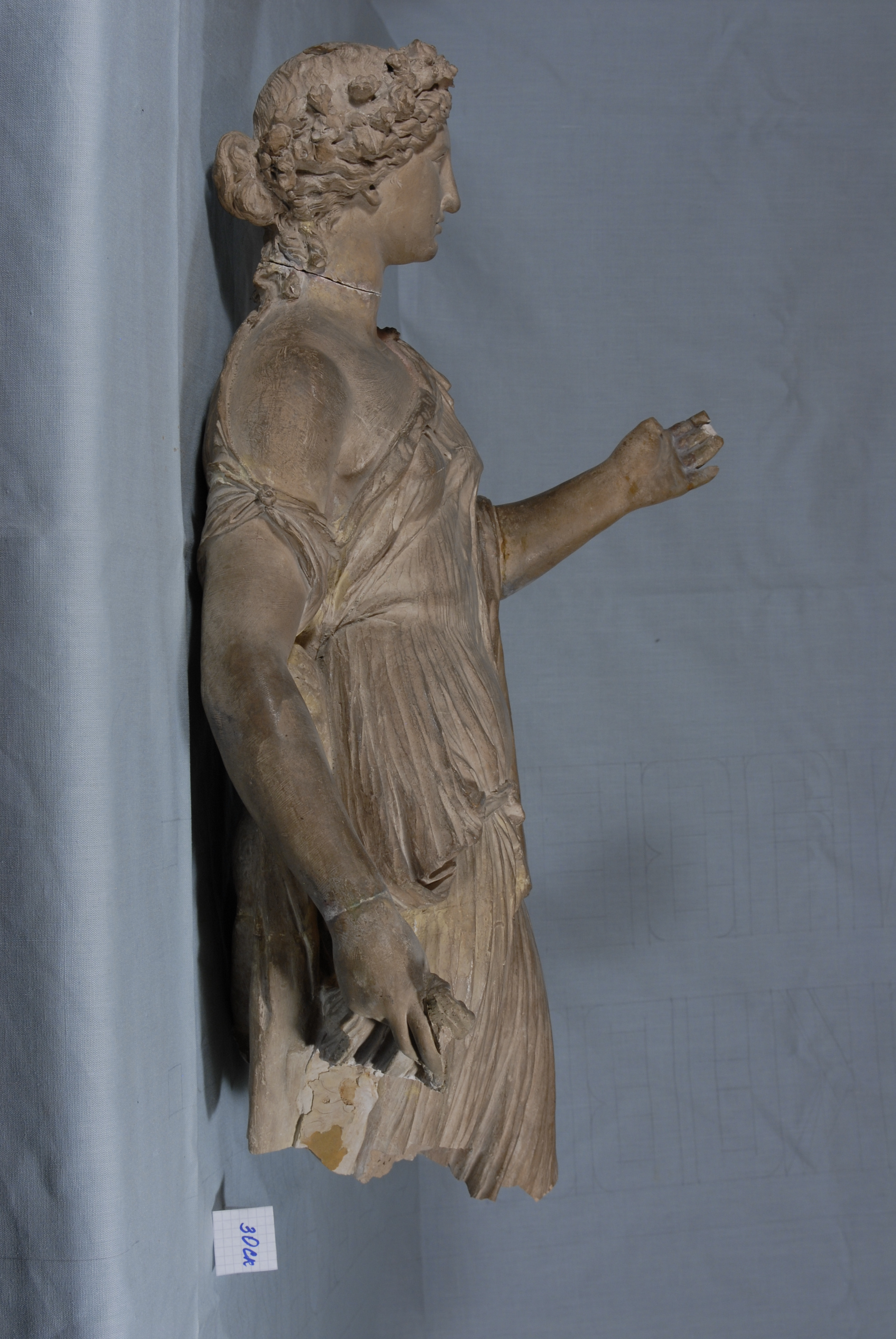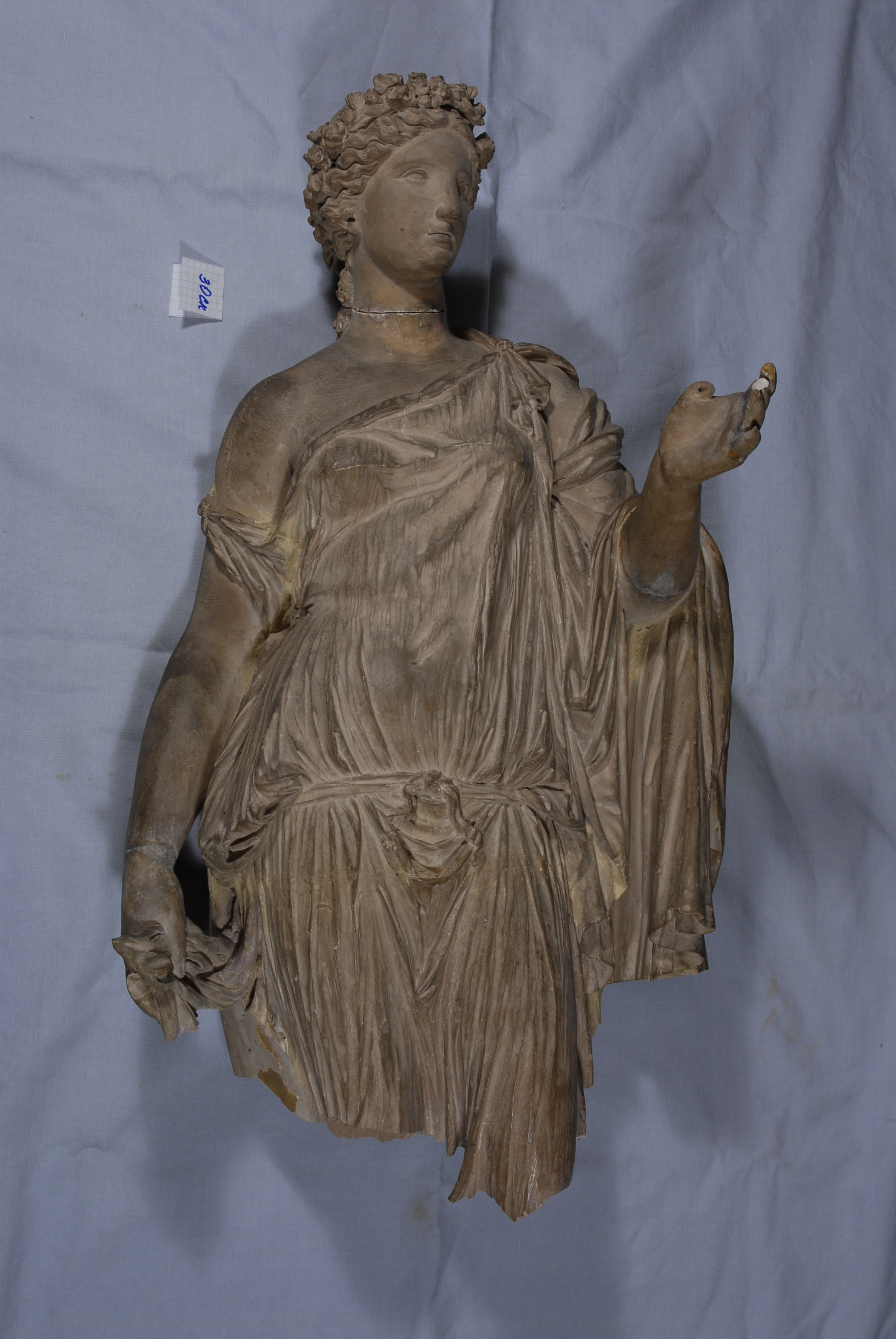 /Опис: Молода дівчина в легкому хітоні, що облягає тіло, стоїть граціозно відставивши ногу. Правою рукою вона злегка піднімає край свого одягу, інша рука, з якої важкими складками спадає закинутий на неї плащ, зігнута в лікті і протягнута вперед. Легкий хітон, спадаючи з правого плеча, оголює частину грудей. Голова, увінчана вінком з квітів, злегка повернена вліво. Ззаду невелика опора, оформлена у вигляді стовбура.