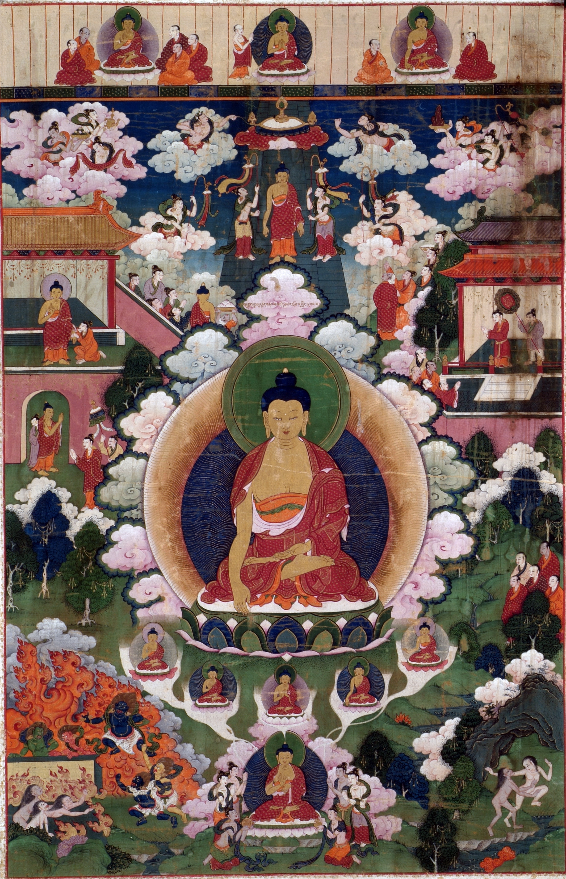 Закладка “Атрибуція” - Змiн. назва: Будда Шак'ямуні. Ікона із серії "12 діянь Будди"/Змiн. розміри: 75,5 х 50; 74 х 48/Змiн. час створення: 19 ст.місце створення, школа: ТибетИзм. техника: клейові фарби