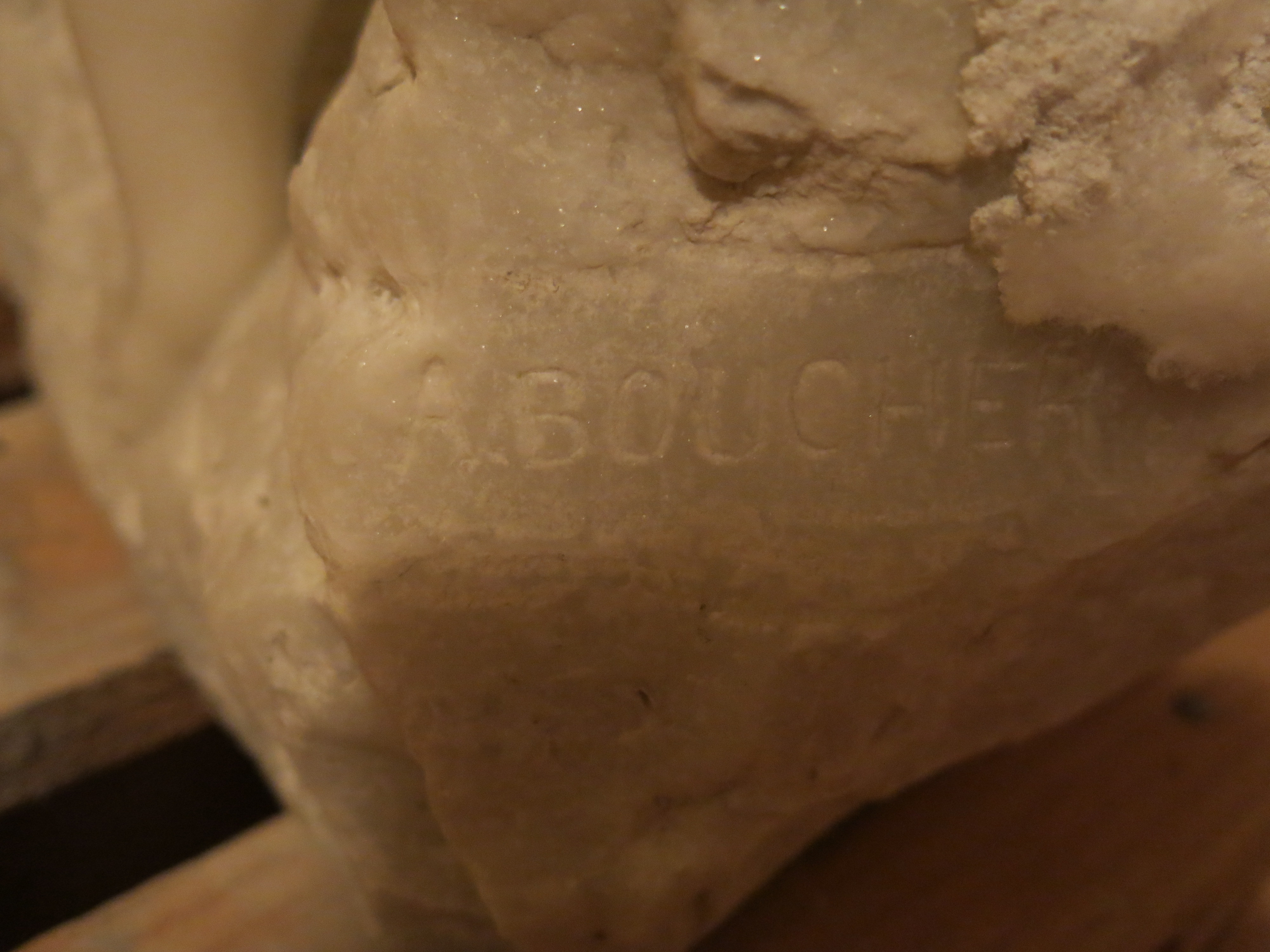 Стійкі пило-грязєві нашарування. Численні дрібні вибоїни, особливо на лівій нозі і в лівій частині фігури. На лівому боці забруднення у вигляді затікань рідини коричневого кольору . В нижній передній частині постаменту, зліва, сколювання.