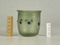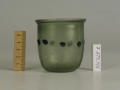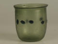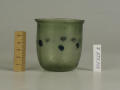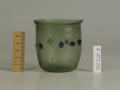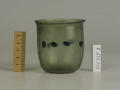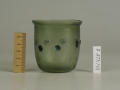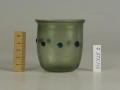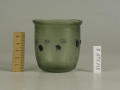 Додаток до назва (лист, ...): Циліндрична зі злегка відігнутим краєм і заокругленим денцем. У центрі оперезаний рядком наварених крупних горошин синього, прозорого скла./Кількість: 1/Старі документи прийому: старі документи прийому у чинній інвентарній книзі не вказані/Опис: Циліндрична зі злегка відігнутим краєм і заокругленим денцем. У центрі оперезаний рядком наварених крупних горошин синього, прозорого скла.