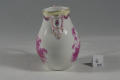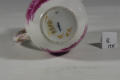 Закладка “Атрибуція” - Змiн.додаток до назва (лист, ...): Молочник (без кришки) грушоподібний, розпис пурпуром із зображенням двох сцен у стилі Ватто./Змiн. Написи, клейма, марки: Марка синя підглазурна: скіпетр. В тісті: 18, К/Змiн.опис: Молочник (без кришки) грушоподібний з напів відкритим носиком та фігурною ручкою; розпис пурпуром - зобажено дві сцени в стилі Ватто; по краю горла - жовта смуга, обрамлена бузковим обручем, перевитим золотою гірляндою з троянд. На ручці та носику - рельефні з пурпуром деталі.Изм. техника: розпис переважно пурпуромИзм. техника: золочення