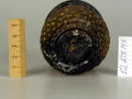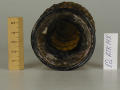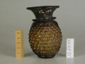 Додаток до назва (лист, ...): Тулуб вази овальної форми у вигляді стилізованого виноградного грона з суцільними рядками опуклих, відтиснутих ягід та двома листочками. Горло коротке, сильно розширюється до потовщеного краю. Воно відокремлене від тулуба опуклим кільцем - складкою. Підставка кільцеподібна, гладенька./Кількість: 1/Старі документи прийому: старі документи прийому у чинній інвентарній книзі не вказані/Опис: Тулуб вази овальної форми у вигляді стилізованого виноградного грона з суцільними рядками опуклих, відтиснутих ягід та двома листочками. Горло коротке, сильно розширюється до потовщеного краю. Воно відокремлене від тулуба опуклим кільцем - складкою. Підставка кільцеподібна, гладенька.