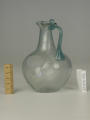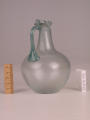Додаток до назва (лист, ...): Тулуб сферичний. Горло конічне, завершується трилопасними вінцями, облямованими навареною смужкою скла. Ручка з суцільного зеленого скла, округлюється нижче рівня вінець. На місці прикріплення до нього утворює петлю. Дно трохи ввігнуте./Кількість: 1/Старі документи прийому: старі документи прийому у чинній інвентарній книзі не вказані/Опис: Тулуб сферичний. Горло конічне, завершується трилопасними вінцями, облямованими навареною смужкою скла. Ручка з суцільного зеленого скла, округлюється нижче рівня вінець. На місці прикріплення до нього утворює петлю. Дно трохи ввігнуте.