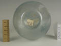 На боці велика пробоїна, від якої йдуть вниз дві тріщини. Наліт іризації. Частина фрагментів втрачена.,