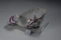 Закладка “Атрибуція” - Наим. предмета, издания: Соусник у формі мушлі/Змiн. розміри: висота 10,6; довжина 23; ширина 9/Змiн. Написи, клейма, марки: марка синя підглазурна: монограма з літер "C T" під короною/Змiн.опис: Соусник у формі мушлі; розпис: червонуваті рельєфні смуги та квіти./Змiн. час створення: 1760-і рр.місце створення, школа: ФранкентальНовый материал: порцелянаИзм. техника: надглазурний поліхромний розписИзм. техника: золочення