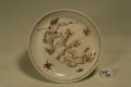 Додаток до назва (лист, ...): із скругленим бортом та наскрізним отвором у центрі; розпис червоною фарбою та золотом: зображення "східних" персонажів./Комм.: Перша італійська мануфактура у Венеції була заснована в 1720 році золотих справ майстром Франческо Вецці (Vezzi). Вона виробляла справжню тверду порцеляну, на зразок мейсенської. До роботи по виробництву порцелянової маси був залучений виходець із Мейсена відомий золотар та емальєр Конрад Хунгер, який також працював у Відні. В наслідок відсутності в Італії хорошого каоліну, мануфактурі прийшлось працювати на саксонському, який завозили. Це стало однією з причин її швидкого занепаду вже у 1727 році. Особливістю порцеляни Вецці був черепок, який дуже просвічувався, та чиста прозора глазур. Розпис виконувався дуже якісно, найчастіше червоною фарбою двох відтінків та золотом у східноазійському стилі. Чашечка з блюдцем є характерними зразками продукції мануфатури Вецці за формою та розписом. Мануфактура існувала дуже короткий проміжок часу, з 1720 по 1727 р. Її вироби зустрічаються дуже рідко./Історія Атрибуціi: Консультація Соловєйчік Р.С. (Ермітаж, 1961 р.) - Венеція, Вецці, перша половина 18 ст. (Блюдце до чашки для шоколаду № 335 ПК. Дуже хороша за якістю виконання)/Кількість: 1/Зв'язок з іншими предм. музею: блюдце до чашки 335-ПК МХ