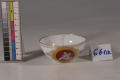Додаток до назва (лист, ...): півкулястої форми, з ручкою-завитком; розпис: в круглому золоченому медальйоні, на червоному тлі, зображено амура, який обнімає собаку/Авторські підписи, клейма: Марка синя підглазурна./Історія Атрибуціi: Консультація Соловєйчік Р.С. (Ермітаж, 1961 р.) - Данія, Копенгаген, поч. 1880-их рр. (не високої якості)/Кількість: 1