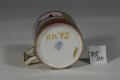Додаток до назва (лист, ...): циліндрична з прямокутною ручкою, орнаментована./Авторські підписи, клейма: Марка синя ідглазурна./Історія Атрибуціi: Консультація Соловєйчік Р.С. (Ермітаж, 1961 р.) - Відень, кін. 18 поч. 19 ст./Кількість: 1/Зв'язок з іншими предм. музею: чашечка до кавового сервізу 72-ПК - 84-ПК МХ