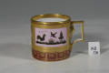 Додаток до назва (лист, ...): циліндрична з прямокутною ручкою, орнаментована./Авторські підписи, клейма: Марка синя підглазурна./Історія Атрибуціi: Консультація Соловєйчік Р.С. (Ермітаж, 1961 р.) - Відень, кін. 18 поч. 19 ст./Кількість: 1/Зв'язок з іншими предм. музею: чашечка до кавового сервізу 72-ПК - 84-ПК МХ