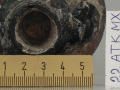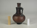 Додаток до назва (лист, ...): Майже цилідрична шийка з плавним переходом від корпуса, злегка розширюється біля основи і біля края. Вище середини шйики на неї одягнений широкий плаский горизонтальний обідок. Дві вертикальні ручки утворюють у верхній частині пласкі петлі, приварені до нижнього боку обідка./Кількість: 1/Старі документи прийому: старі документи прийому у чинній інвентарній книзі не вказані/Опис: Майже цилідрична шийка з плавним переходом від корпуса, злегка розширюється біля основи і біля края. Вище середини шйики на неї одягнений широкий плаский горизонтальний обідок. Дві вертикальні ручки утворюють у верхній частині пласкі петлі, приварені до нижнього боку обідка.