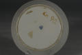 Додаток до назва (лист, ...): із скошенимна бортом; декор: на коричнево-лиловому тлі - орнамент золотом./Авторські підписи, клейма: Марка синя підглазурна./Історія Атрибуціi: Консультація Соловєйчік Р.С. (Ермітаж, 1961 р.) - Відень, 1796 р./Кількість: 1