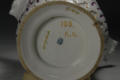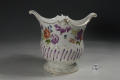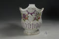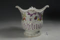 Додаток до назва (лист, ...): з фігурним краєм та двома пласкими ручками; декор: у нижній частині - рельєфна смуга з фіолетовими штрихами, у верхній - букети квітів./Авторські підписи, клейма: Марка синя підглазурна./Історія Атрибуціi: Консультація Соловєйчік Р.С. (Ермітаж, 1961 р.) - Відень, бл. 1760 р. (пляшкова передача)/Кількість: 1/Зв'язок з іншими предм. музею: аналогічне до № 101- ПК МХ