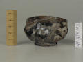 Додаток до назва (лист, ...): Чаша з товстого золотаво-коричневого прозорого скла з вплавленими опаковими нитками білого, жовтого, блакитного кольору, що утворюють на посудині різноманітні хвилясті смуги. Вся маса в цілому нагадує різновид сердоліка. Поверхня чаші декорована нерівномірно розташованими товстими, сильно виступаючими ребрами. Ніжка з прозорого навареного синього скла. "Др. Приб." VI в., гл. ХІІ, № 666./Кількість: 1/Старі документи прийому: старі документи прийому у чинній інвентарній книзі не вказані/Опис: Чаша з товстого золотаво-коричневого прозорого скла з вплавленими опаковими нитками білого, жовтого, блакитного кольору, що утворюють на посудині різноманітні хвилясті смуги. Вся маса в цілому нагадує різновид сердоліка. Поверхня чаші декорована нерівномірно розташованими товстими, сильно виступаючими ребрами. Ніжка з прозорого навареного синього скла. "Др. Приб." VI в., гл. ХІІ, № 666.