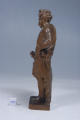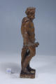 Кількість: 1/Опис: Зображений чоловік, що стоїть. Вбраний у драперію, яка перекинута через праве плече і закріплена ременем навскіс через корпус, прикриває стегна і ззаду торкається постаменту. На обличчі – борода, зверху волосся – корона. Голова повернута до правого плеча. У правій опущеній руці – сніп блискавок, ліва зігнута у лікті і торкається драперії біля лівого стегна.