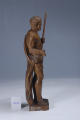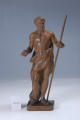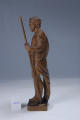 Кількість: 1/Опис: Зображений чоловік, що стоїть. Вбраний у драперію, що прикриває стегна і ззаду торкається постаменту, її тримає перекинутий через ліве плече ремінь. Волосся із невеликою залисиною на темені, на обличчі – вуса та борода. Руки зігнуті у ліктях, ліва тримає довгу тонку палицю із втраченим навершям, права із відкритою долонею та відбитими пальцями.