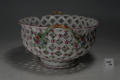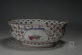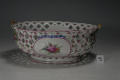 Додаток до назва (лист, ...): овальної форми з ажурним бортом та двома ручками у вигляді перевитих стеблин; декор: два овальних медальйона з букетами квітів; на переплетеннях борту - червоні рельєфні квіточки./Історія Атрибуціi: Консультація Соловєйчік Р.С. (Ермітаж, 1961 р.) - Росія, Гарднер, кін. 18 ст./Кількість: 1
