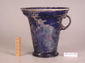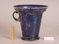 Додаток до назва (лист, ...): Пласке, ледь ввігнуте у центрі дно, по краю виступає повним кільцем. Глибоке повздовжнє заглиблення на невеликому закругленому вушці, ділить його біля основи на дві частини. Широкий борт посудини обведений по самому краю з зовнішнього боку молочнобілою, опаковою смугою./Кількість: 1/Старі документи прийому: старі документи прийому у чинній інвентарній книзі не вказані/Опис: Пласке, ледь ввігнуте у центрі дно, по краю виступає повним кільцем. Глибоке повздовжнє заглиблення на невеликому закругленому вушці, ділить його біля основи на дві частини. Широкий борт посудини обведений по самому краю з зовнішнього боку молочнобілою, опаковою смугою.