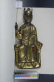 Закладка “Атрибуція” - Наим. предмета, издания: Христос Вседержитель. Фігура для релікварія/Змiн.опис: Фронтальне зображення Христа, який сидить на троні. Права рука піднята у благословляючому жесті, ліва спирається на розкриту книгу. На голові Христа корона з трьома камінцями (біле та червоні).