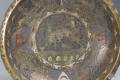 Закладка “Атрибуція” - Наим. предмета, издания: Жемельон. Чаша для омовення рук/Змiн.додаток до назва (лист, ...): Герб ймовірно кастільскій. Фесташкова емаль зустрічається на рейнських або кьольнських виробах./Змiн.опис: Чаша кругла з нешироким бортом. Дзеркало чаші декоровано зображенням двох воїнів, які б’ються стоячи на стінці фортеці. Стінки оздоблені чотирма трикутними щітками-гербами, між ними стилізовані зображення військових у човнах.