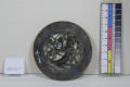 Закладка “Атрибуція” - Наим. предмета, издания: Ажурна пластина для оздоблення релікваріїв/Змiн.информацiя об оригiнале: Йомовірно є прикрасою для скриньок або епископських посохов (т.з. "яблука"). Мотив хімери та трилистника є характерними для Ліможа. Розмір таких пластин 8-9 см у деамітрі./Змiн.опис: Пластина ажурна кругла з зображенням химери в центральній частині. По краях пластини по синьому тлу проходить смуга орнаменту із стилізованого трилисника та лілеї. Вздовж зовнішнього та по внутрішньому краю – гравірований орнамент.