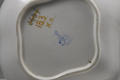 Додаток до назва (лист, ...): у вигляді мушлі; розпис: на блакитному тлі, у резервному медальйоні, обрамленому золоченим пальмовим та лавровим листям і гірляндою з трояндочек, - букет квітів./Авторські підписи, клейма: Мара синя підглазурна/Історія Атрибуціi: Консультація Соловєйчік Р.С. (Ермітаж, 1961 р.) - Севр ?, 1775 р. (1775 - х, сумнівна, мяка порцеляна)/Кількість: 1