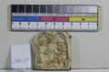 В багатьох місцях темні плями, залишки позлоти, сліди цвяхів. Незначні пилові нашарування, місцями стійкі забруднення. Потемніння кістки. Темна пляма. Незначний скол у правій частині (1, 5 мм),