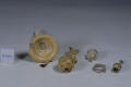 Верхня частина втрачена.Фрагментарний стан. Пилові нашарування, пожовтіння, незначні тріщини та сколи. Шовкова нитка відірвана. На одній з деталей зламане різьблене з’єднання.,