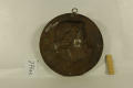 Зверху - кільце. Зворот - технологічний контррельєф, старий інв. номер - білою фарбою, праворуч чорною тушшю (?) - нрзб.№34 (?). На звороті знизу в центрі в металі - прямокутна (зі зрізаними кутами) табличка з написом, що виступає: