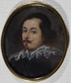 Закладка “Атрибуція” - Змiн.опис: Погрудне зображення зверненого в 3/4 вліво чоловіка сердніх років з еспаньолкою і вусами із закрученими вгору кінчиками, з темним хвилястим волоссям, що зачісане на лівий бік і з боків спускається майже до плечей. На ньому темний одяг з великим мереживним із зубчастим краєм відкладним коміром.
