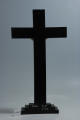 Фігура Христа відокремлена від хреста; руки доліплені, тріщини, втрачено один палець. Пилові забруднення (місцями стійкі). На голові отвір для кріплення. Цвяшки з металу потемнілі. Неміцне закріплення фігури на підставці. Втрати: три пальці правої руки, три пальці лівої руки. На хресті втрачено монограму. На місцях втрат є залишки металевого кріплення.,
